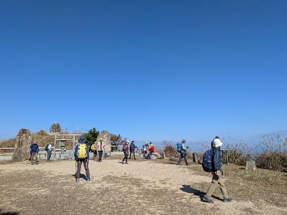 山頂は広く、景色も素晴らしいです。山頂の鳥居の横辺りにはセンブリも咲いていました。とても小さいので気付かずに踏んでしまいそうになりながら写真を撮ります。可愛らしい花にも癒されました。